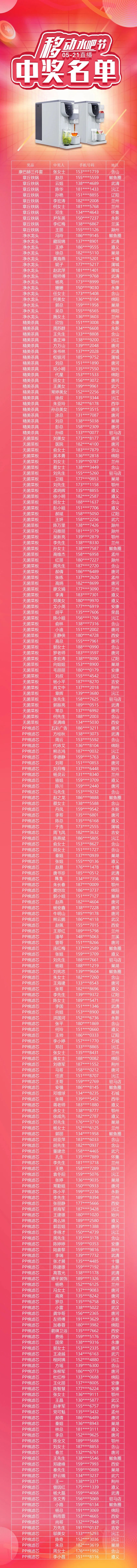 什么?聽說科恩移動水吧節(jié)不僅能15天免費體驗一臺頂九臺的集成式凈水器,還能參與直播抽獎,而且還是100%中獎,科恩電器也太壕氣了吧!?。?/span>科恩移動水吧節(jié),誓讓國人喝好水,全國免費體驗活動正在火熱進行中,重磅政策與誠意豪禮,免費體驗,產(chǎn)品始終如一。為回饋消費者,科恩移動水吧節(jié)直播抽獎活動順利舉行,凡參與免費體驗活動即可抽取獎品,實力寵粉,100%中獎!抽獎名單公示如下: