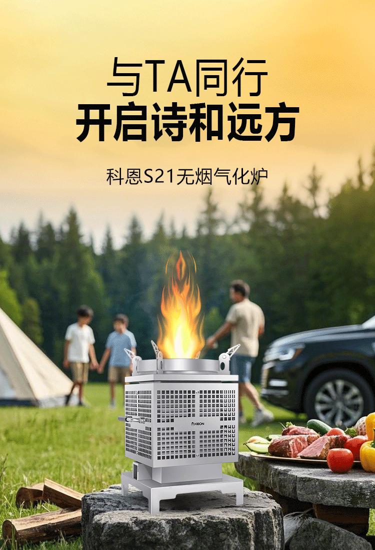 不負(fù)春日好時(shí)光,山野新綠撞上人間煙火,科恩用科技重構(gòu)廚房與自然的邊界,科恩無煙氣化爐S21實(shí)現(xiàn)戶外烹飪無煙擾,打造春日的滿分儀式感!